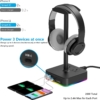 KAFRI RGB Headphone Stand with USB Charger Desk Gaming Headset Holder Hanger Rack with 3 USB Charging Port and 2 Outlet – Suitable for Gamer Desktop Table Game Earphone Accessories Boyfriend Gift